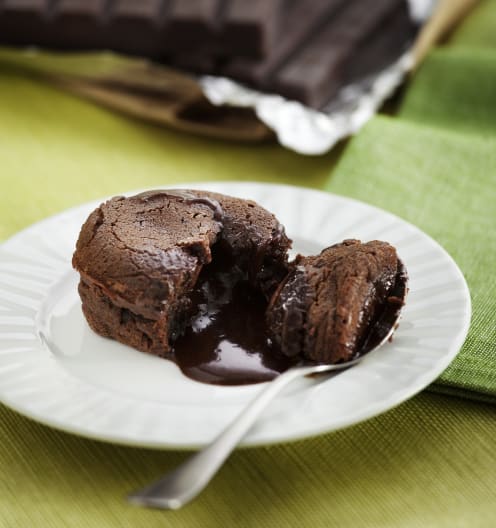 Desmoldamos inmediatamente y servimos. Para saber si hemos tenido exito solo hay que observar que haya quedado hecho por fuera y el chocolate fundido por dentro.