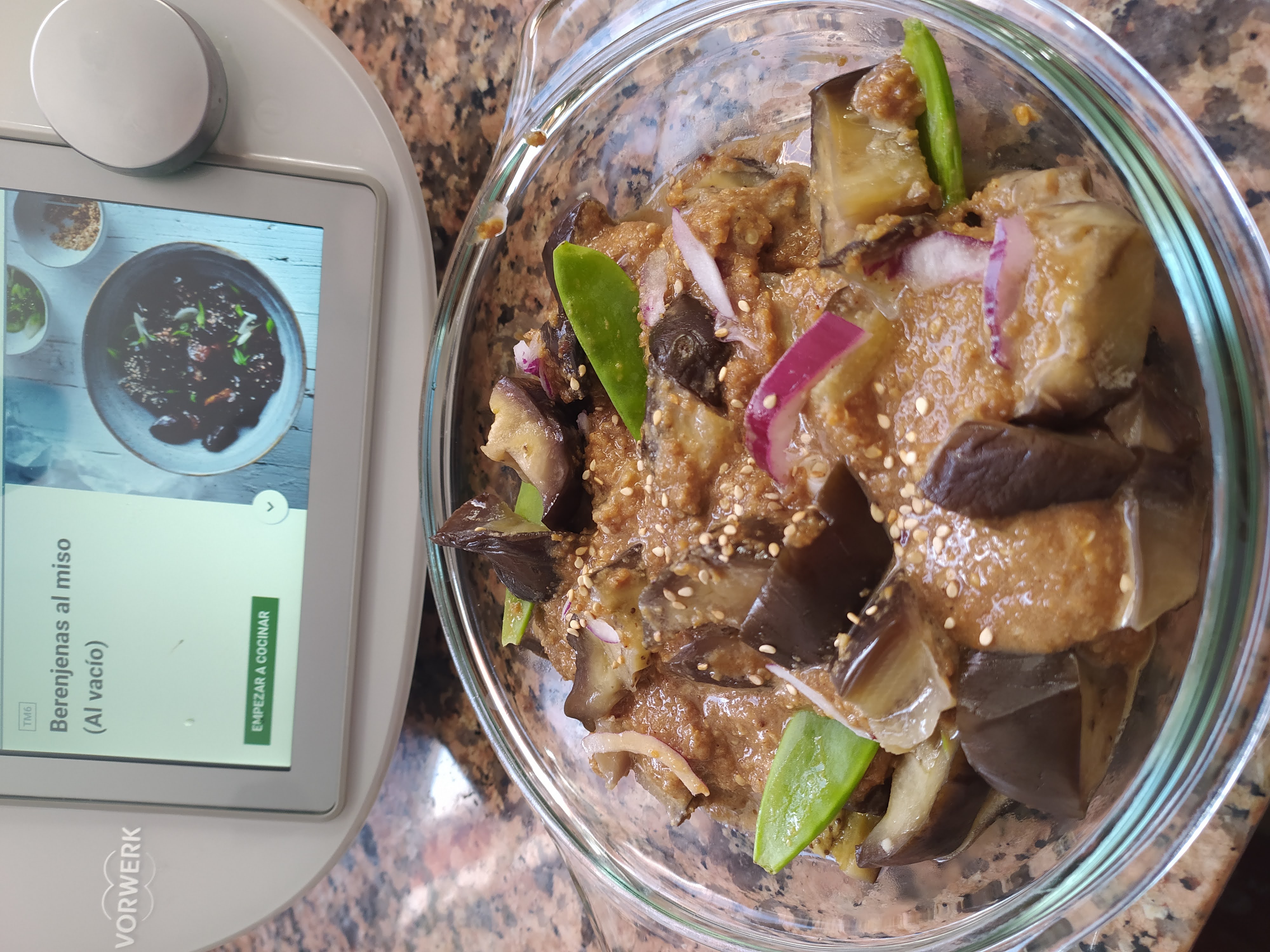 Cocinar al vacío con cubrecuchillas en Thermomix: Unas berenjenas con toques orientales